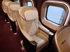 | グランクラス車内。 シートはレザー張りで高級感あり。 ただしやや固めな感じがあった。 |