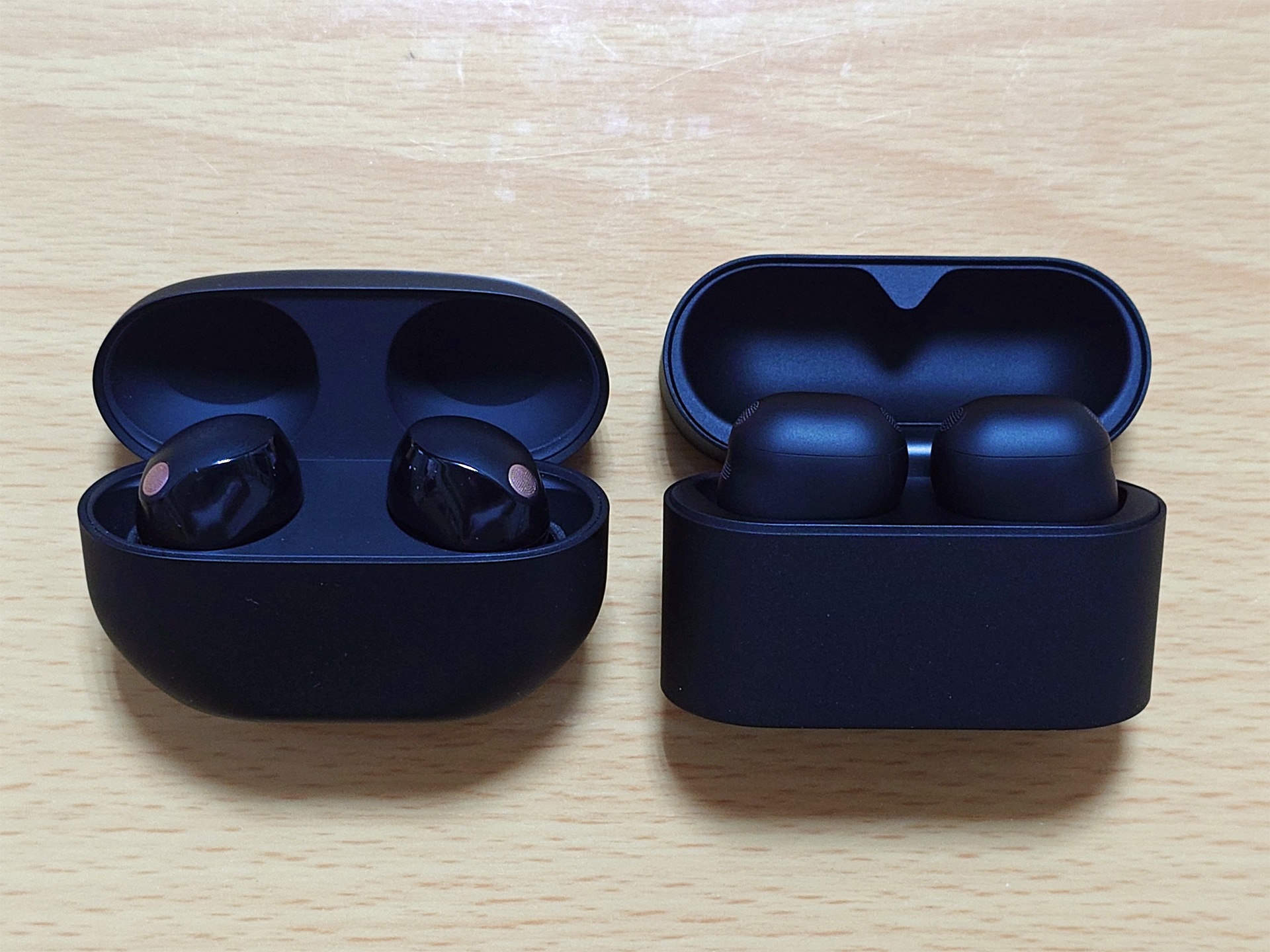 あと、WF-1000XM5で気になっていた側面の光沢仕上げがWF-1000XM6で全てマット仕上げになったのはやはり良い。WF-1000XM5をケースから着脱する際にはどうしても滑りやすい側面の光沢仕上げ部分を持つ必要があって気を使っていたのだけれど、WF-1000XM6ではマット仕上げで段差もあるので滑りにくく、気を使わなくても良くなった。