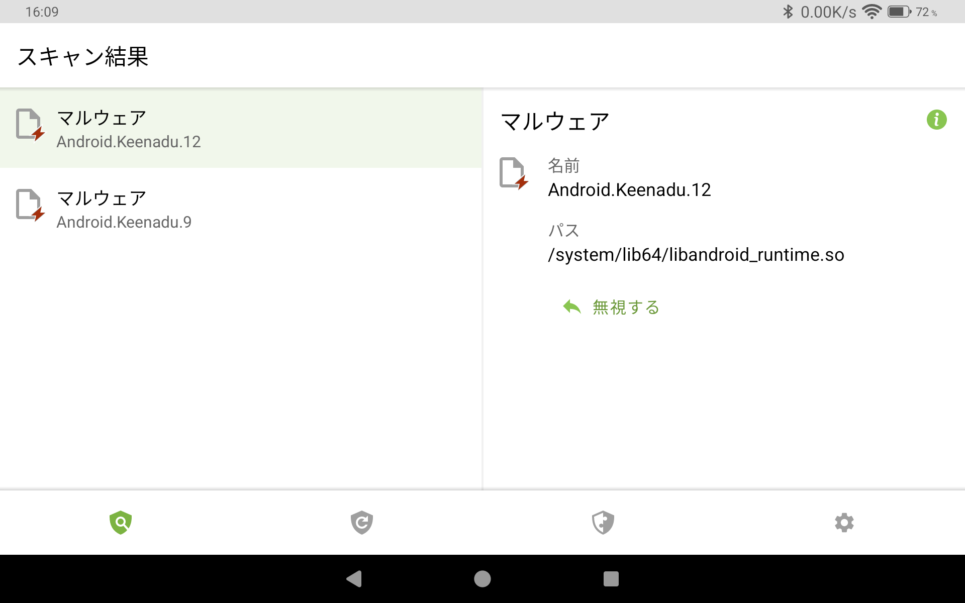 心配になったので、手持ちのiPlay 60 mini Proについてチェックを行うことにした。KeenaduはAnti-virus Dr.Web Lightというアプリで検出できるとのことであったので、このアプリをインストールし、スキャンを実行。残念ながら、マルウェアが検出されてしまった。