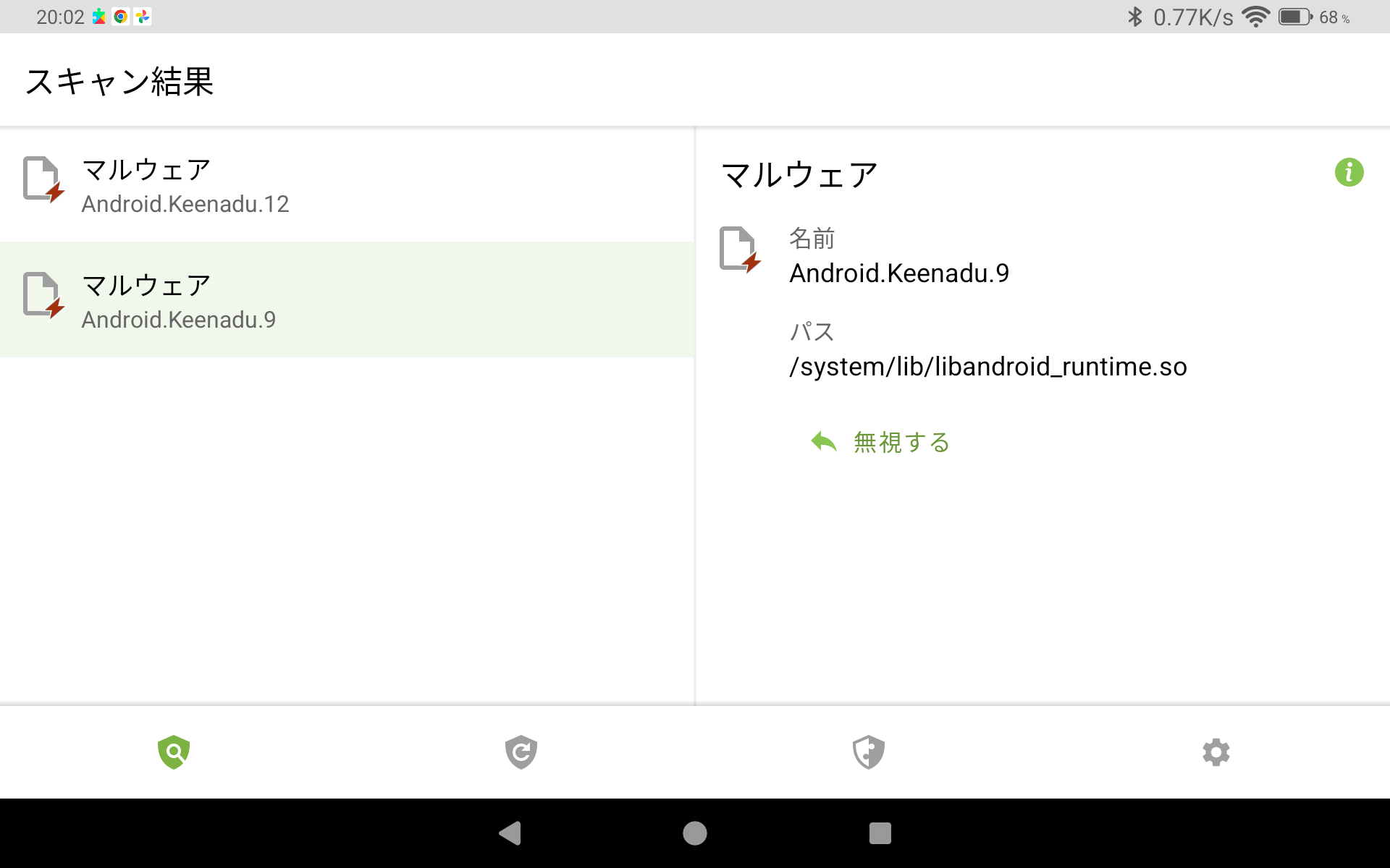 | 検出されたのはKeenaduでAndroidのライブラリ内に潜んでいるらしい。 パスが/system/lib64/libandroid_runtime.soのことなので64ビット版ライブラリかな。 |
