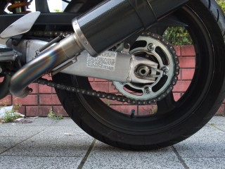 オイル系の交換はさほどこだわりが無かったのでお任せで交換。チェーン&スプロケットについては、スプロケットは純正のままだったけれど、チェーンについてはRKのBLACK SCALEチェーンにしてみた。ゴールド系のチェーンほどは派手ではないけれど、ちょっと変わった感じがして良し。