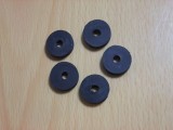そこで、しっかり固定するために、一工夫してみることにした。ステアリングステム内径はノギスで計測してみたところ19mm強というところだったので、5mm厚のゴム板を外径19mm程度の円盤状にカットし、センター部分に6mmドリルで穴を開けてボルトを通せるようにしたラバーリングを合計5個作成。5個作成した理由は、デフォルトのラバープラグは長さ1インチ(約2.54mm)でカットする指定があり、それに近い長さにするためである。