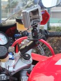 一旦、この状態でカメラを車載して動画撮影してみたのだが、エンジン回転数がある程度上がると振動がまともにカメラに伝わってしまい、ぶれまくった動画になってしまうことが分かったので、振動対策を行うことにした。手持ちの金具類を組み合わせてカメラホルダに固定し、カメラホルダと自由雲台の間に5mm厚のゴム板を経由させることで振動を軽減するようにしてみた。ちなみに、各金具やゴム板を固定するボルトにはナイロンナットを組み合わせて緩まないようにしてみた。