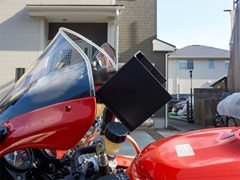 車と違って、バイクでカーナビを使用する際にはどうしても明るい屋外設置になるので、日光の影響を受けて画面が見にくくなりやすい。少しでも画面の見にくさを軽減できればと思い、フードを自作して使用することにした。