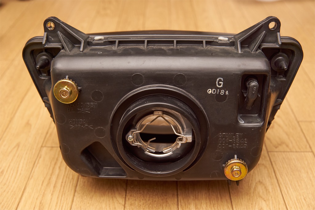 うちのFireStormのヘッドライトユニットについては、HID取付時の空焼き不足によると思われるリフレクタの曇りや、HIDバーナー破裂時に飛散したガラス片が残っていたりしていた。また、前回のHID換装の際に斜めシェード付きバーナーのグレア対策(耐熱パテでシェード隙間を埋める)に失敗したために飛散してしまったパテの粉末など、汚れが発生してしまっていた。このあたりの問題を現状のヘッドライトユニットのままで解決するのは難しそうだったので、思い切ってヘッドライトユニットごと交換して根本的に解決することにした。