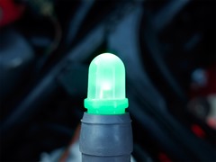 インジケータに使用するLEDバルブはT10で、集光タイプでは眩しすぎるので拡散タイプである必要があり、かつ、各インジケータの色に合わせて赤・青・緑・アンバーの各色が必要になる。これまでもこの条件を満たすLEDバルブを探していたのだけれど、なかなか見つからなかった。最近になって、孫市屋が取り扱っているラウンドフロストLEDバルブが条件を満たすことが分かったので、これに手を出してみることにした。必要な各色のラウンドフロストLEDバルブを確保し、換装を実行。