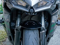 装着するホーンがスレンダーホーンに確定したので発注し、まもなく届いた。次にNinja1000SXのどの位置にホーンを装着するか検討を開始。純正ホーンの位置やヘッドライト裏側、サイドカウル内側など、あちこちにホーンを装着できそうな空間があるように思えたので、純正ホーン位置にスレンダーホーンの片側を装着して、他方については装着できそうなスペースをカウル内で確保できれば良いと考えていた。しかし、実際に純正ホーンを取り外してそこにスレンダーホーンを装着してみたところ、カウルと干渉してしまうために装着できなかった。ヘッドライト裏側もフロントフォークと干渉してしまうため装着できず。サイドカウル内側のちょうどウインカーの上あたりにある空間にスレンダーホーンを装着してみたところ、フロントフォークやカウルには干渉しないもののウインカーコネクタっぽいコネクタと干渉してしまうため装着できなかった。この時点で、カウル内にスレンダーホーンを装着するのは諦めた。