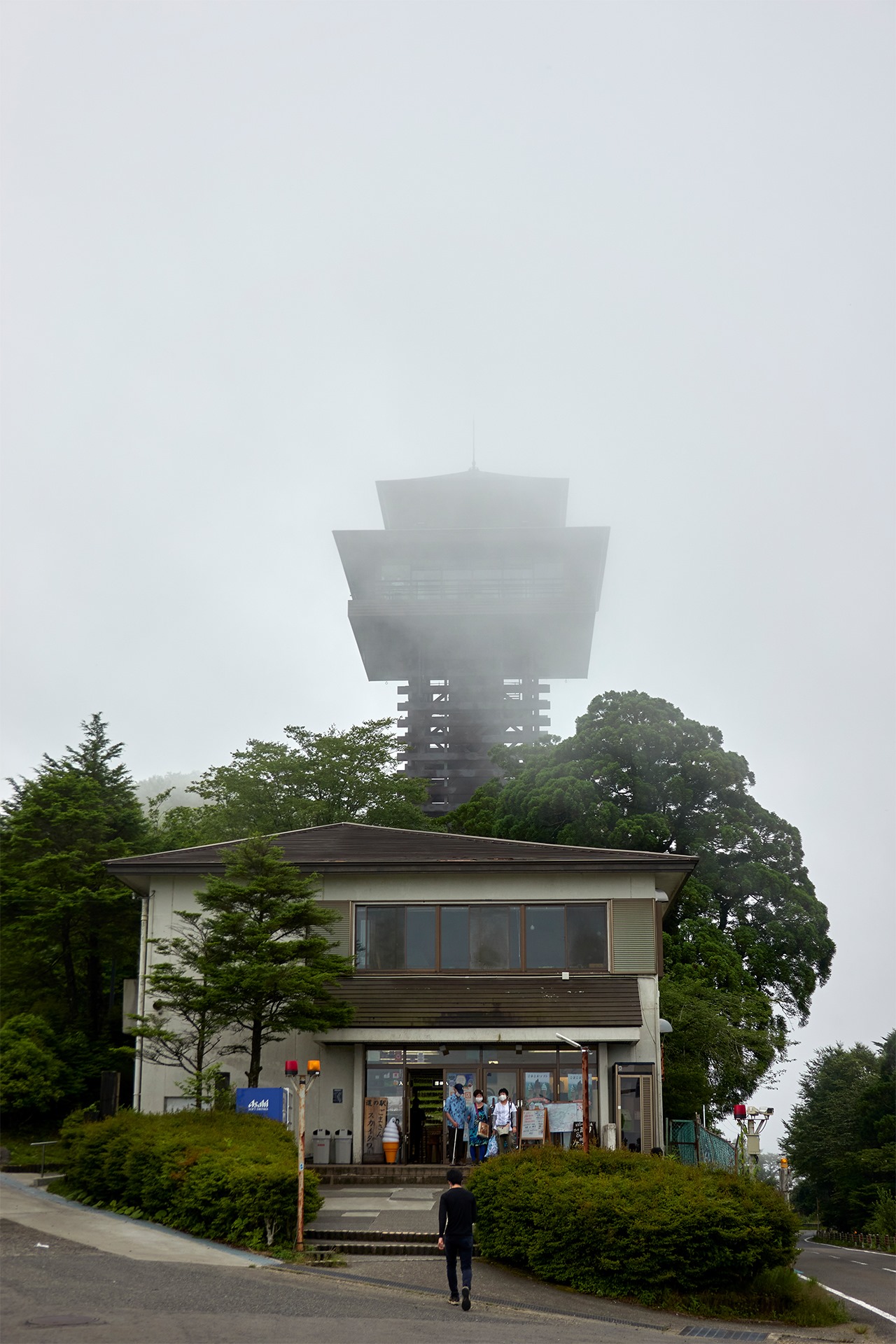 | 残念ながらごまさんスカイタワー到着時は霧に覆われていて周りは真っ白。 | |
